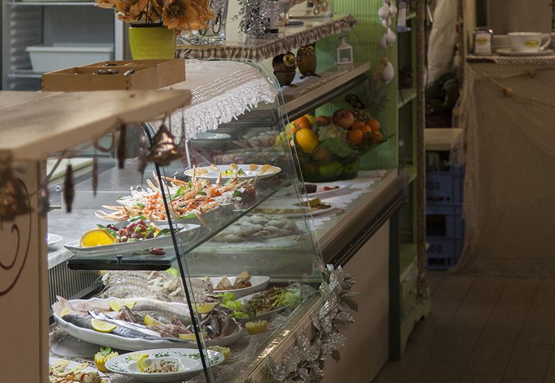1) con vetrina a vista, che potete vedere con i vostri occhi direttamente in sala. Qui vengono preparati i secondi piatti come fritto misto di pesce, le grigliate di mare, la bruschetteria;